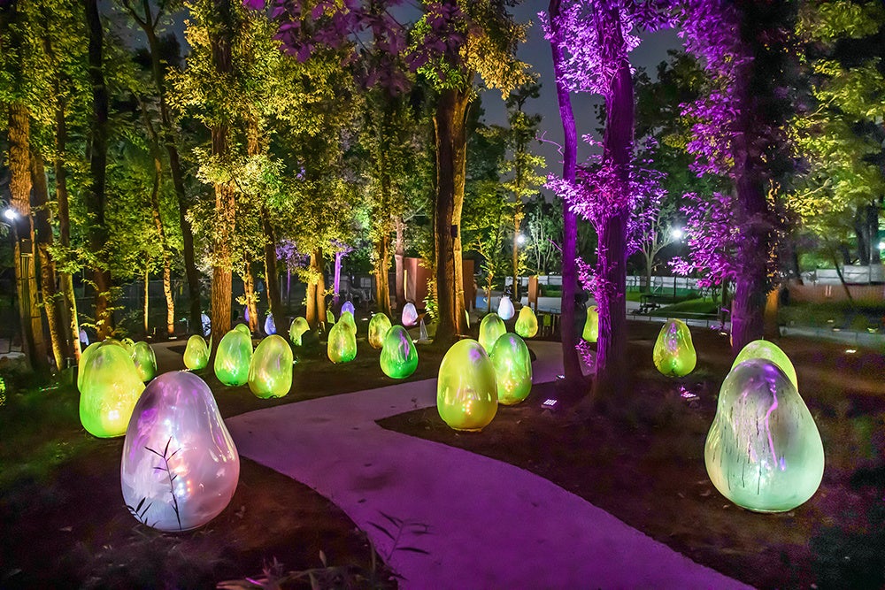 「チームラボ どんぐりの森の呼応する生命」 ©武蔵野樹林パーク