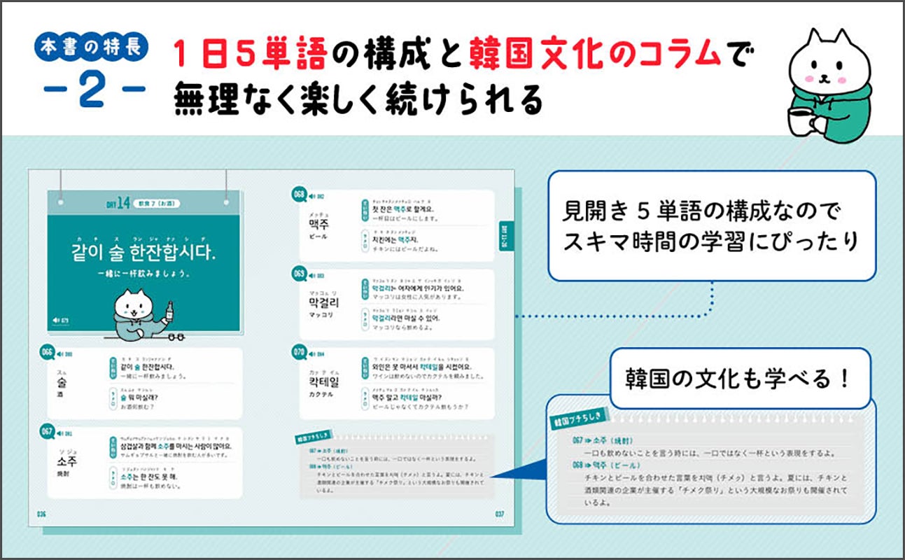 また、韓国に興味を持ってもらえるように「韓国プチちしき」という韓国語や韓国文化を紹介するコラムを用意しています。