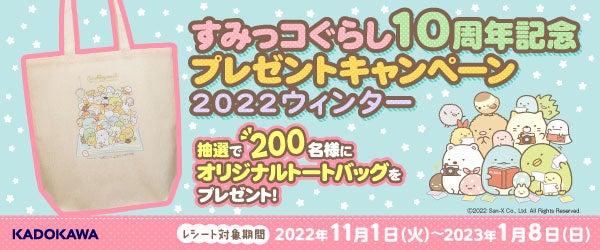 「すみっコぐらし」10周年を記念して『すみっコぐらし10周年記念プレゼントキャンペーン 2022ウィンター』をKADOKAWAアプリにて開催いたします。