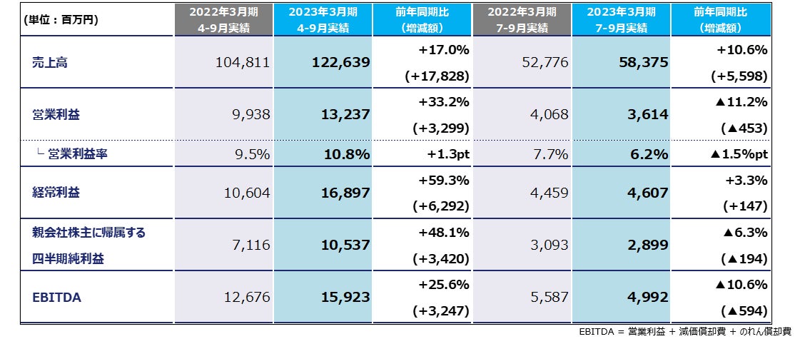 ・第2四半期連結累計期間における業績は前年同期比で、売上高+17.0%、営業利益+33.2%増。