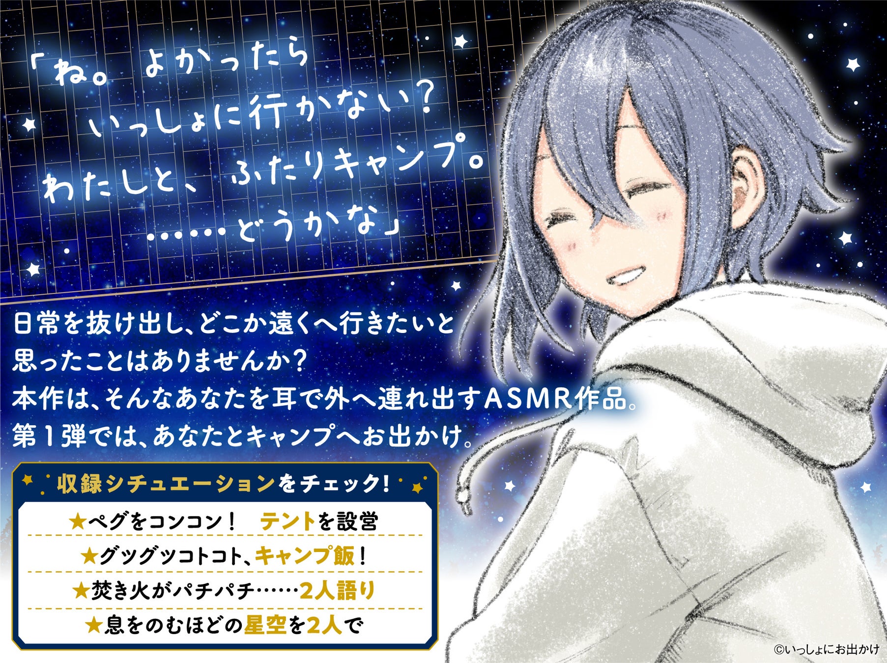 2022年10月26日(水)0:00〜2022年11月22日(火)23:59までの間、「いっしょにお出かけ旅の音 夏、ふたりの星空キャンプ」が25%OFFでご購入いただける他、初回購入特典として冬野カモメ氏が描くパッケージイラストのスマホ用壁紙が付いてきます♪