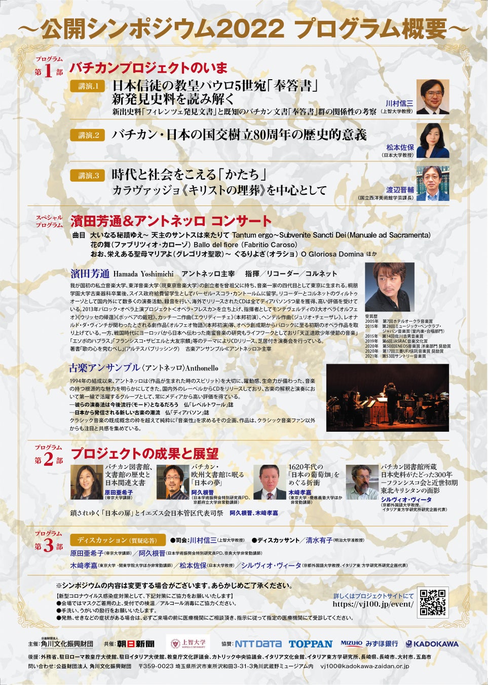 後援:外務省、駐日ローマ教皇庁大使館、駐日イタリア大使館