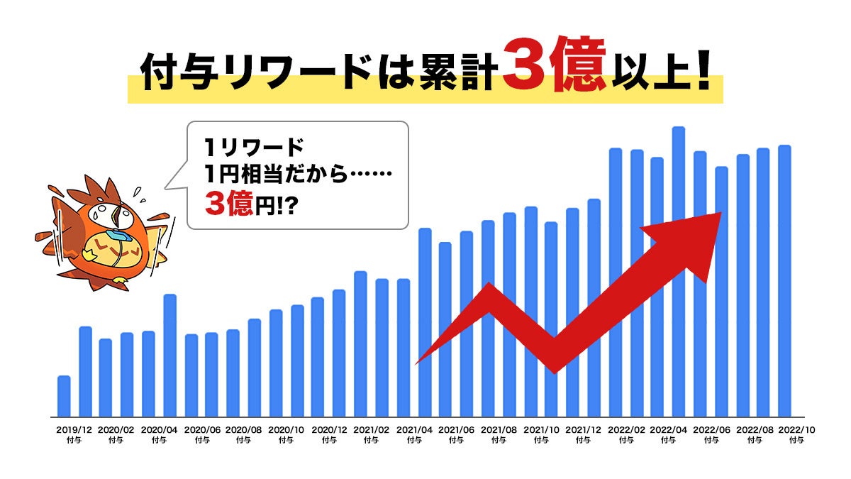 毎月の付与リワード数推移(2019年12月~2022年10月)