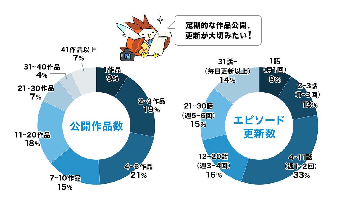 左:リワードを換金したユーザーの公開作品数 /右:直近30日エピソード更新数の分布