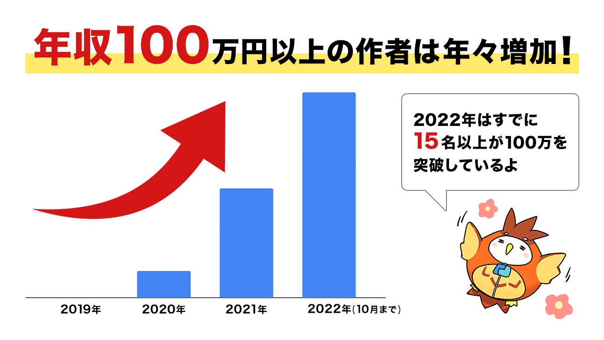 年収が100万円以上の作者が、年々増加しています。2022年ではすでに