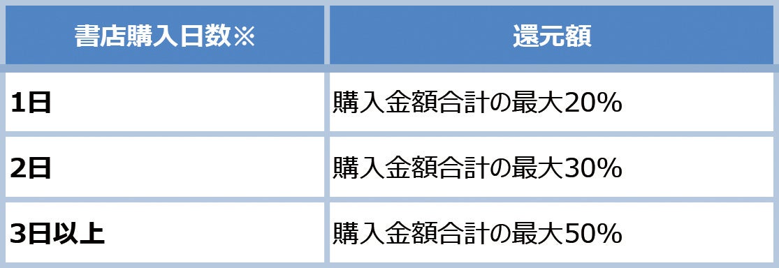 キャンペーン期間中、書店でKADOKAWAの書籍・雑誌を購入した日数に応じて還元率がアップします(投稿レシート記載の購入日により判定します)。