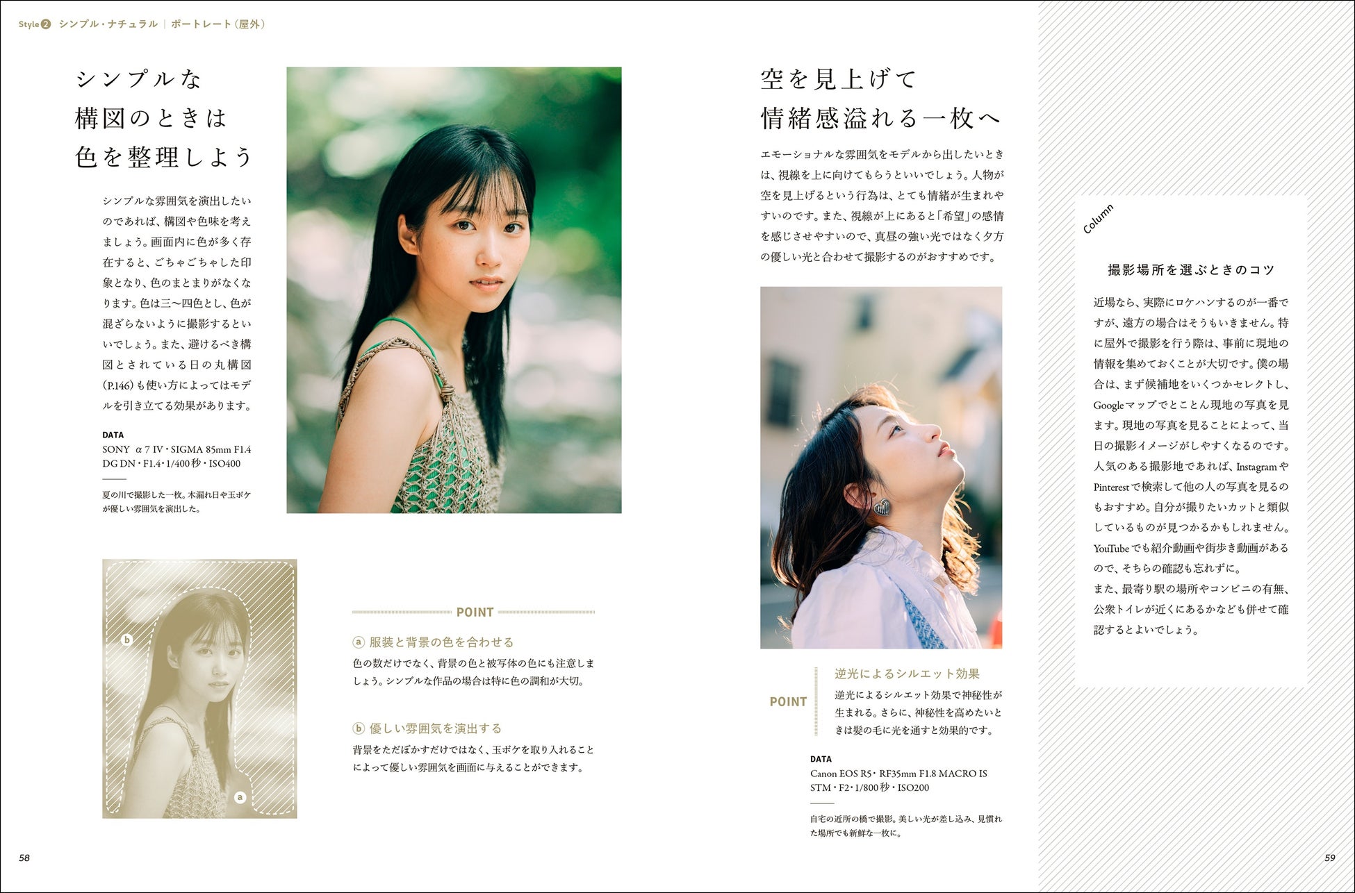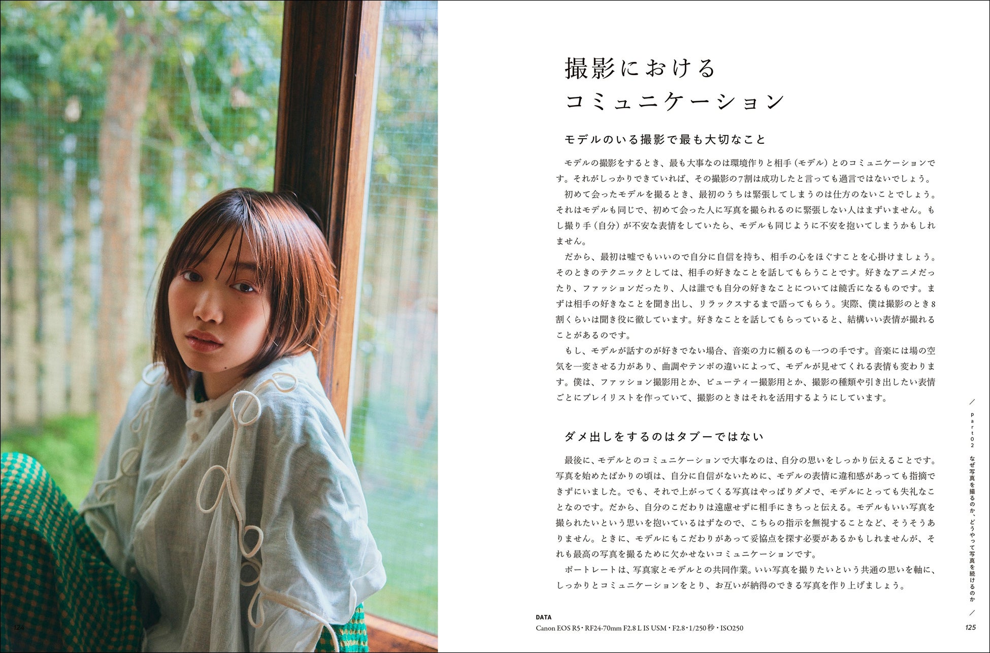 そこで、具体的な撮影技術のほかにも、写真を続けるモチベーションや写真を仕事にする方法を答えるページも設けています。武井氏は独学で写真を学び、現在はカメラマンとして活躍しています。そんな経験に基づく撮影技術の磨き方やSNS運用などを語るページは読みごたえ抜群。また、CURBONの代表として1000人以上のカメラマンと知り合ってきた経験から得られた、仕事としての写真についての記述も必見です。