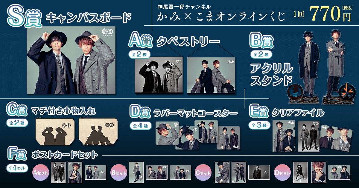 商品は「神尾晋一郎チャンネル かみ×こま」出演者の声優・神尾晋一郎さんと駒田航さんの撮り下ろし写真をモチーフにしたオリジナルグッズとなります。撮影は、これまで国内外の俳優、アーティストの写真を手掛けてきたフォトグラファー・You Ishii氏が担当。