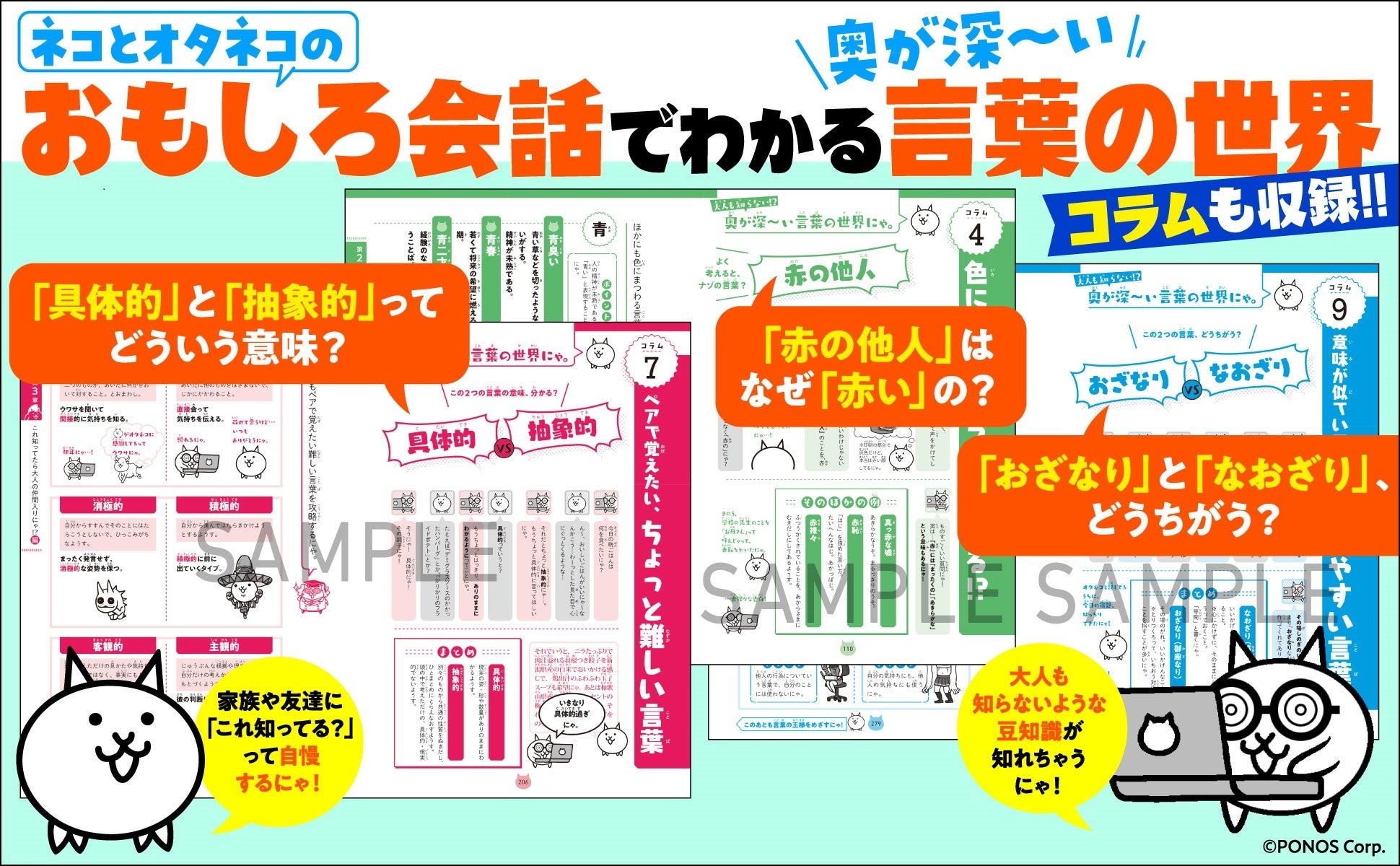 ネコとオタネコの会話形式で、言葉の世界への興味関心が高まります。