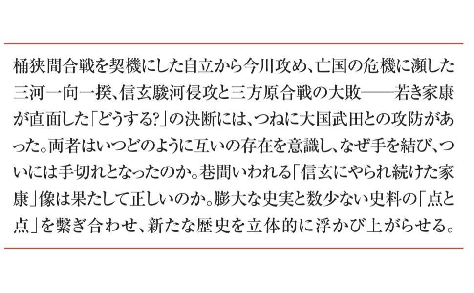 史料博捜に裏付けられた深い洞察と新たな知見、事績の点と点を一本の「歴史」として叙述する手腕は必見。「信玄にやられ続けた家康」という見方を覆し、新たなる歴史像を提示します。