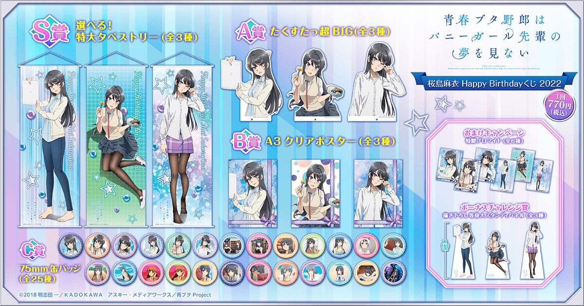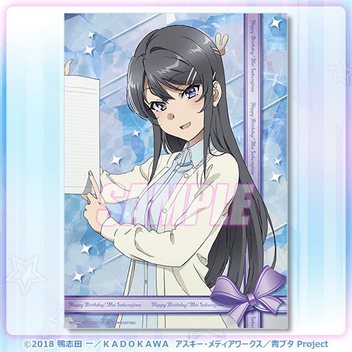 商品は、主人公・桜島麻衣の誕生日を記念した、桜島麻衣の新規描き下ろしイラストによるオリジナルグッズとなります。桜島麻衣の新たな魅力を描いた描きおろしイラストの商品や、作中の思い出のシーンを集めた商品など、桜島麻衣の魅力を詰め込んだ商品と共に、ぜひ桜島麻衣の誕生日を祝いましょう!