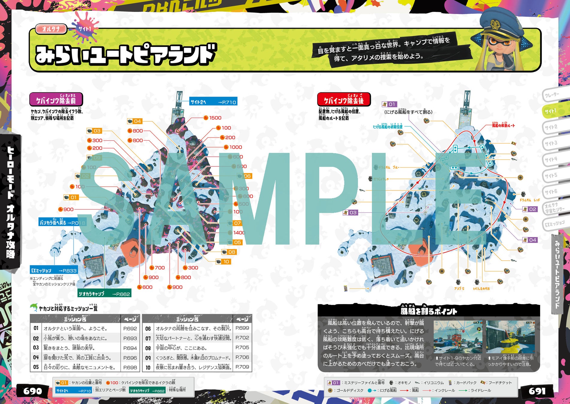 ルールごとに微妙に変化する地形にも対応した全ステージのマップを、全ルールで掲載。切り離して携帯可能なサイズなので、いつでもどこでもステージを研究することができます。