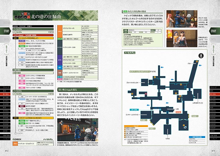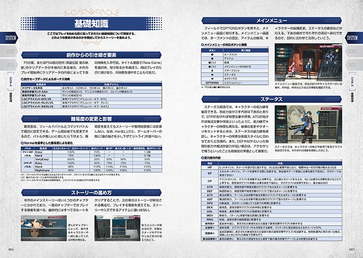 SP、4spg、グルメ、釣りなどの収集要素を取り逃さずに進められる攻略チャートに加え、各エリア・ダンジョンの詳細マップも収録。