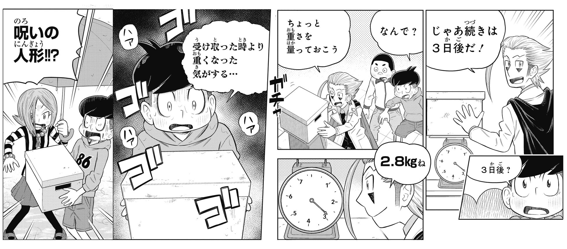 おなじみの学校の怪談や都市伝説が次々に登場。至仁神先生は、「人形」の重さの変化を分析したり、「隙間女」の居場所を計算したり、