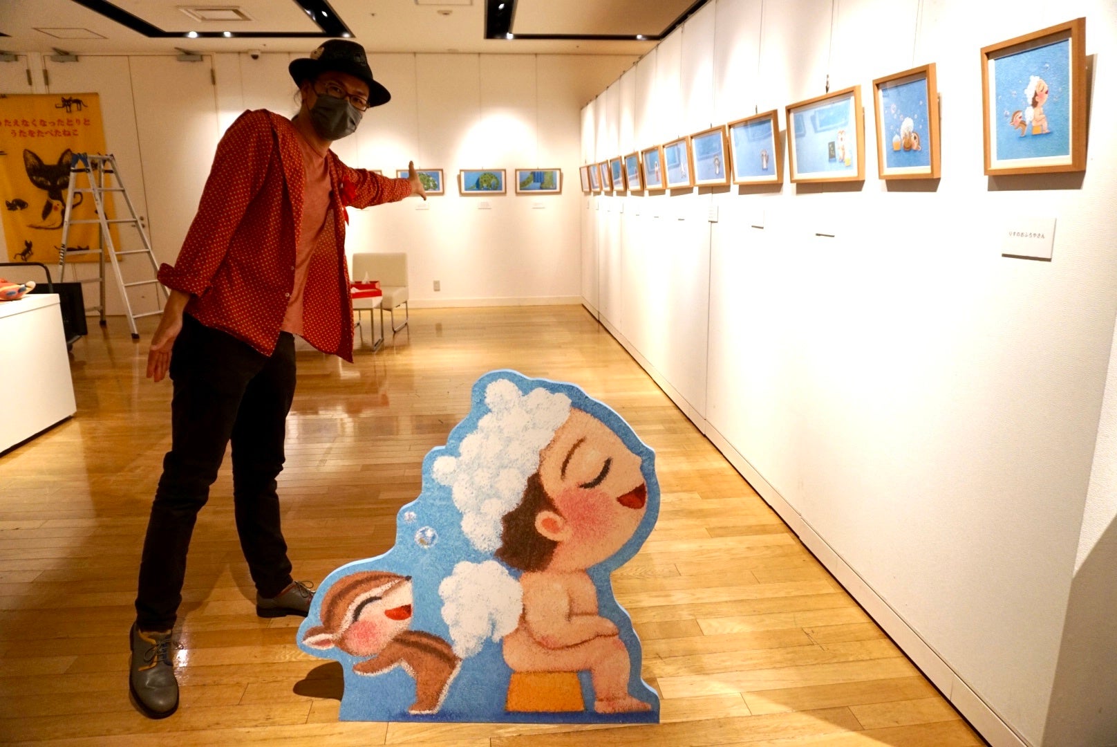 2022年12月に阪急うめだ本店で開催される個展「たなかしん作品展」では、新作絵画や『りすのおふろやさん』をはじめとする絵本の原画を一堂に展示します。