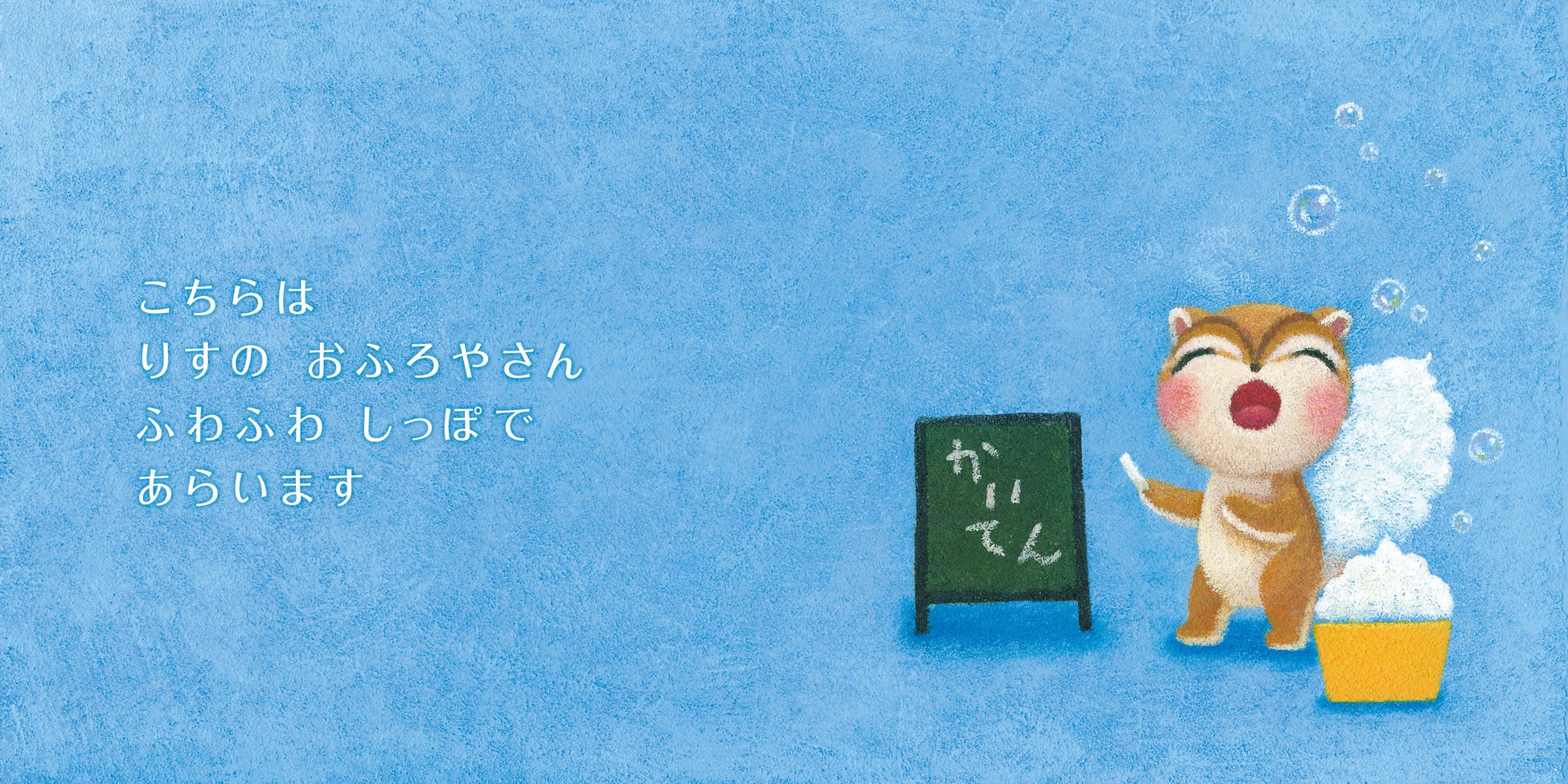 かわいい「りすのおふろやさん」が開店!ふわふわのしっぽで洗います。
