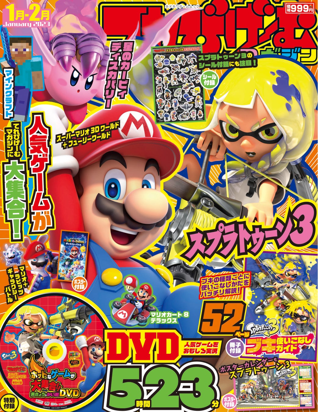 大人気の『スプラトゥーン3』を大特集。本誌内では合計14ページ+付録にて掲載しています。もちろん最新マリオタイトルの『マリオ+ラビッツ ギャラクシーバトル』や『星のカービィ ディスカバリー』などの人気タイトルを大ボリュームで掲載。