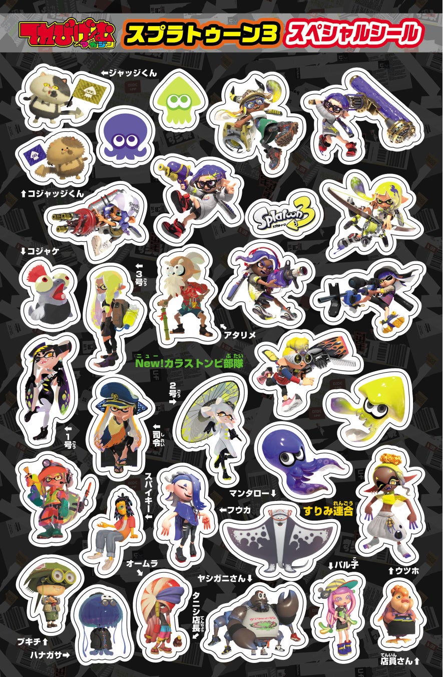 『スプラトゥーン3』に登場するキャラクターたちがシールに! 全部で32枚のシールをいろいろなところに貼って楽しめます。