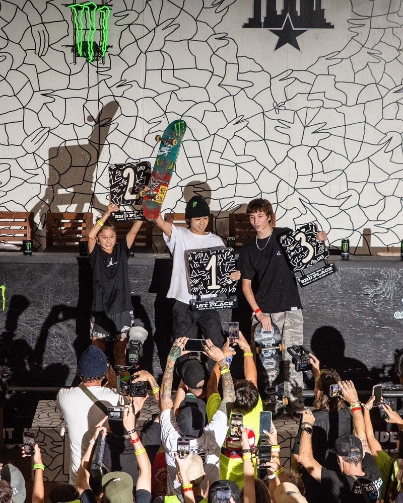 28回目を迎えた「TAMPA AM」はアマチュアスケーターにとって世界最高峰の大会で、今年は世界中から100人以上が参加し、世界一の座をかけて戦いました。王者に輝いたのはバンタンデザイン研究所高等部のスケートボード&デザイン専攻1年生の池田大暉さん。池田さんは4月に開催された世界最大のアクションスポーツの国際競技会『X Games』のスケートボードストリート決勝で銀メダルを、6月に開催されたアマチュア大会「DAMN AM」で優勝しており、名実ともに2022年アマチュアスケーター最強の称号を手に入れました。