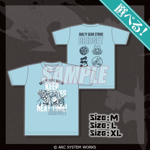 商品は最新作『GUILTY GEAR -STRIVE-(ギルティギア ストライヴ)』に参戦したブリジットのイラストや、過去タイトルからのイラストも使用したオリジナルグッズとなります。