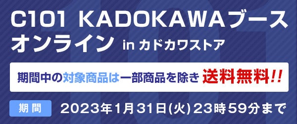 KADOKAWAの公式オンラインショップ カドカワストアでは、ブースで販売する商品の先行受注を受付中です。詳細はカドカワストア内C101特設ページをご確認ください。また、C101商品を対象とした送料無料キャンペーンも実施しているので、この機会をお見逃しなく!