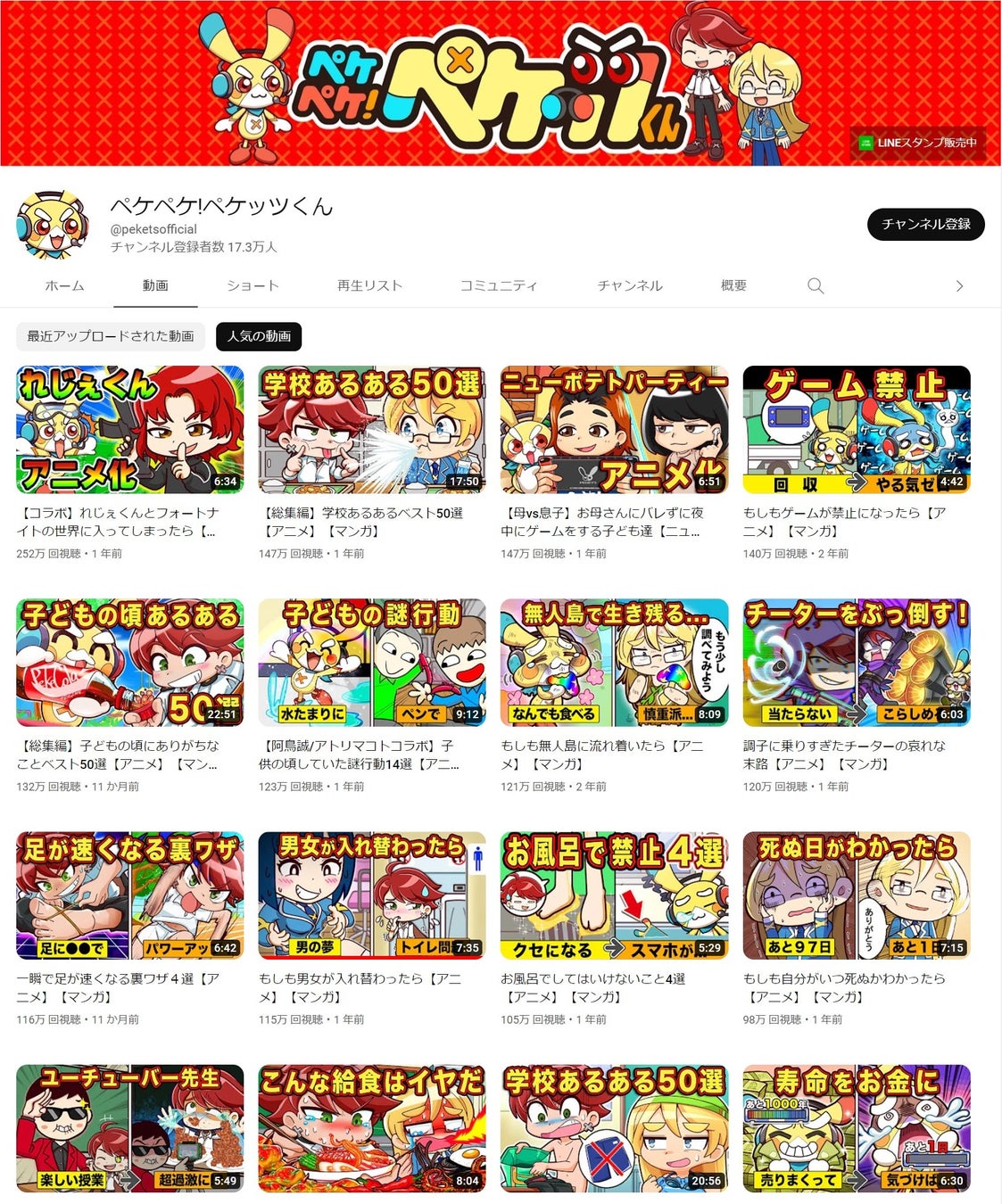 「ペケペケ!ペケッツくん」は、株式会社KADOKAWAが制作・運営し、YouTubeで展開するアニメチャンネル。小中学生向けのゆるいコメディアニメを展開し、チャンネル登録17.3万人、月間ユニークユーザー数最大140万人、月間再生数最大1,370万回を突破。