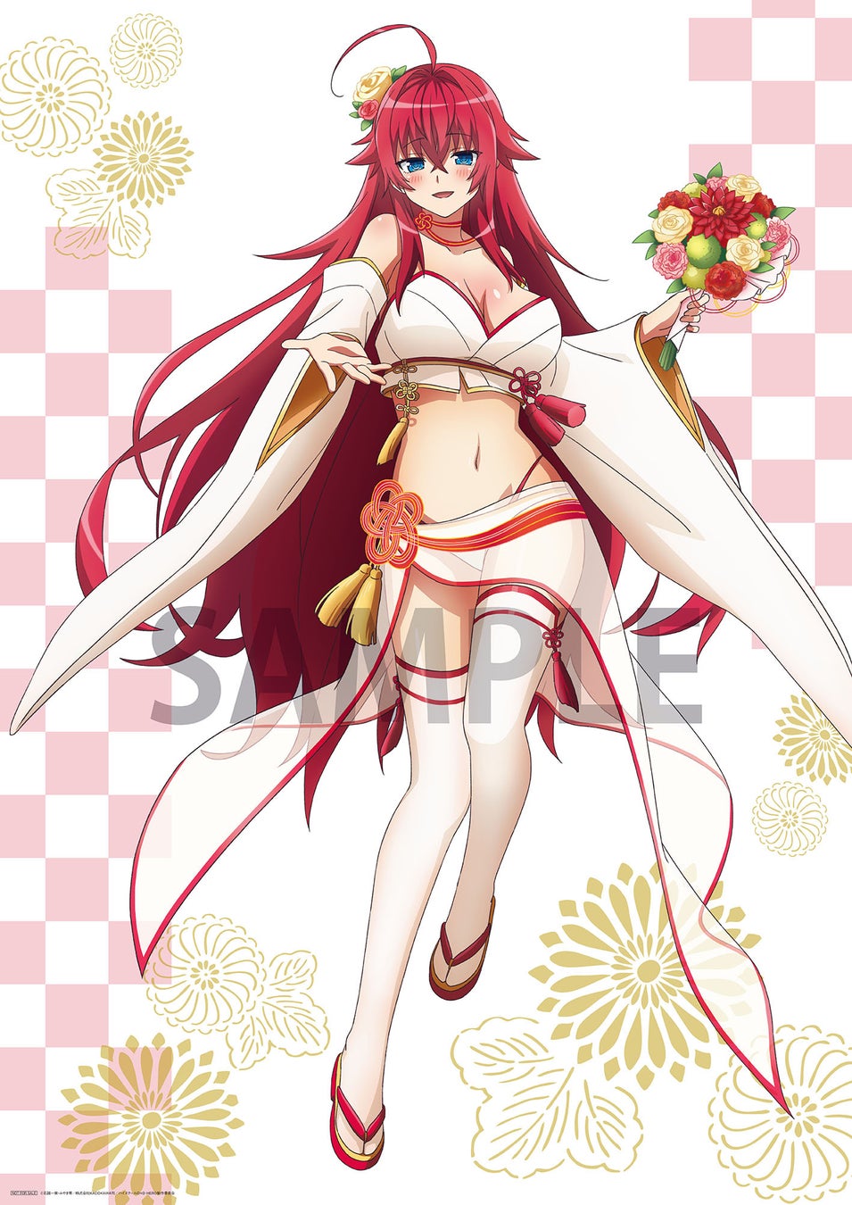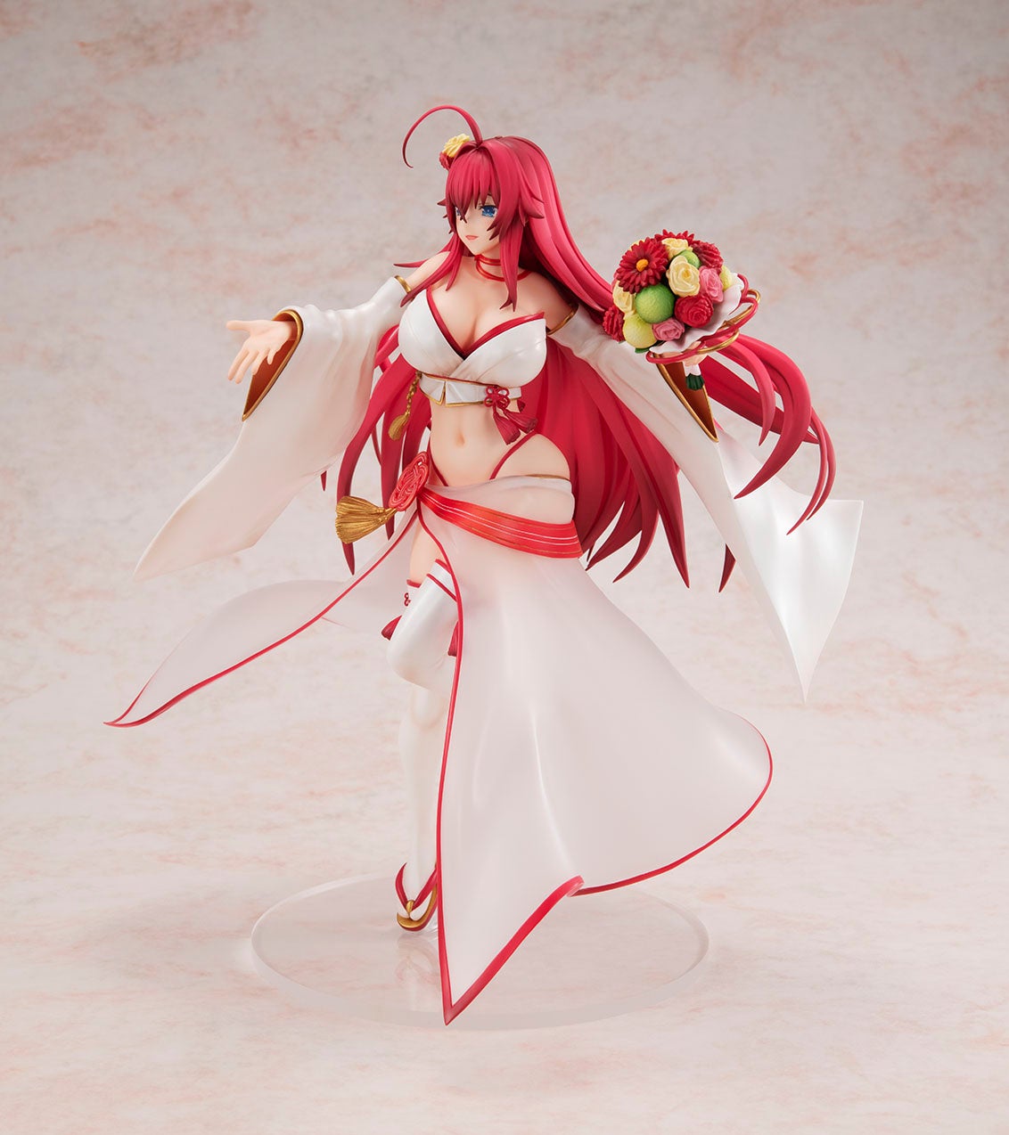 白無垢? ビキニ? ふたつの衣装をいいとこ取りした“白無垢ビキニ”! 純白の着物部分が魅せる純情さとビキニ故の大胆な肌露出が絶妙のバランスで成立っています。さらに綿帽子、振袖の付け替えが可能。綿帽子をかぶせれば花嫁に相応しい淑やかな印象に、振袖を長手袋に変更すれば、リアスの極上の肢体が楽しめます! 麗しの花嫁衣装に身を包んだリアスを、ぜひあなたの元へお迎えください!