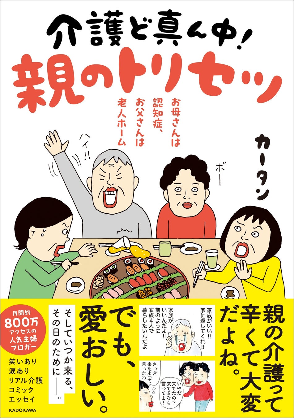 本書では、いよいよ本格化した親の介護に奮闘するカータンと家族の姿を描きます。