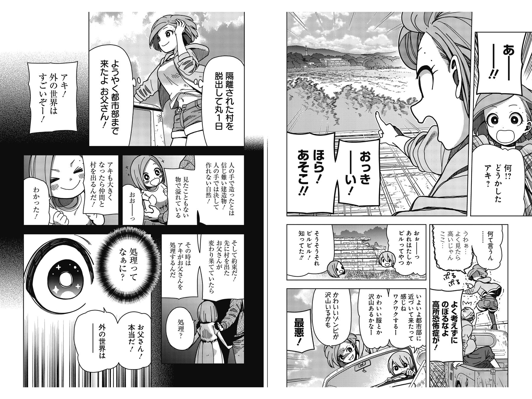 壊滅前の世界を記憶していないアキは父親をさがすため、仲の良いハル、ナツキと共に村を抜け出す。