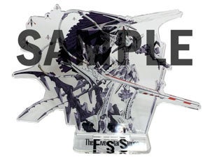 最新のデザイン画を使用した、全高約110×全幅145mmの超大型アクリルフィギュア。作品ロゴも入った台座付きだ。