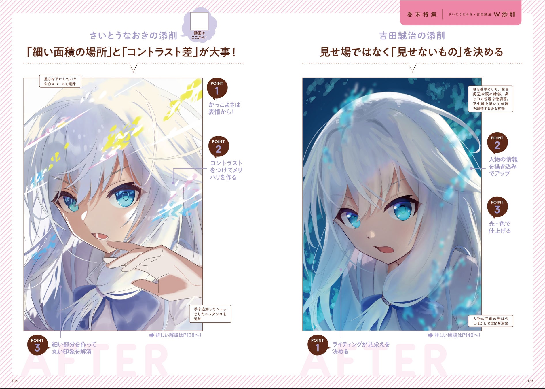 今作では、添削する隙のないほど上手なイラストの「どこが上手なのか」を詳細に解説する、「ほめちぎり」企画も掲載。上手なイラストを見た時に「なぜこのイラストが上手なのか?」と考え、自分の絵をさらにパワーアップさせることができます。