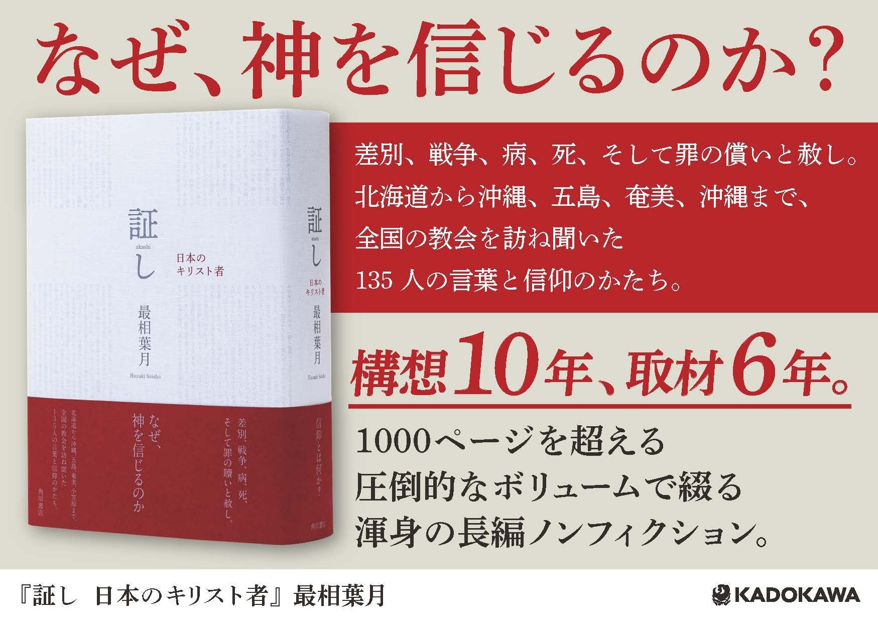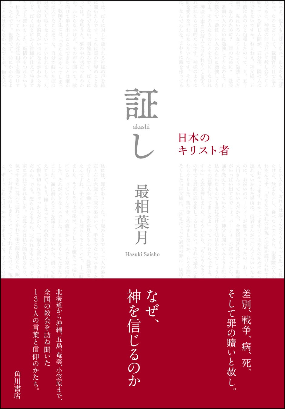 タイトルになっている「証し」とは、キリスト者が神からいただいた恵みを言葉や行動を通して人に伝えること。2016年に北九州から始まった取材で、著者は北海道から沖縄、五島、奄美、小笠原まで全国の教会を訪ね、135人のキリスト者の言葉に耳を傾けます。