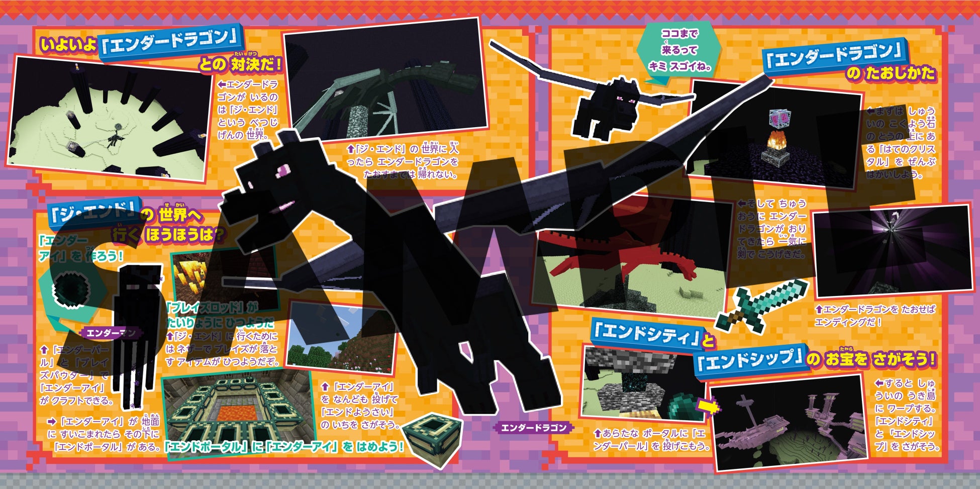 拠点の作り方から、冒険の進め方、エンダードラゴンのバトルなどサバイバルモードの攻略ポイントを紹介しています。