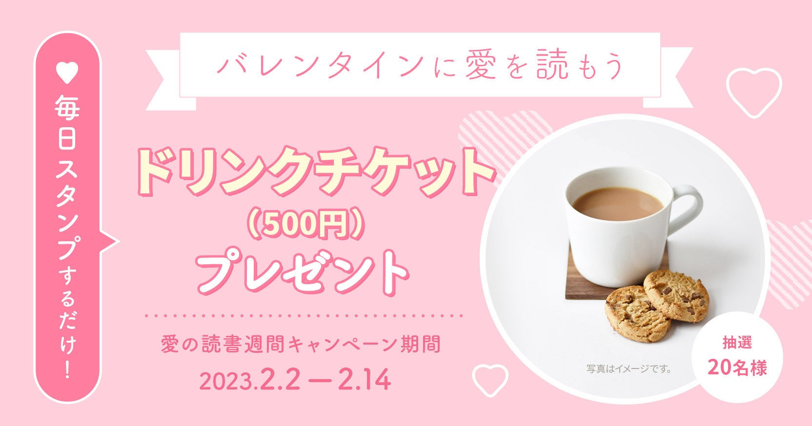 キャンペーン期間中、魔法のiらんどに投稿されているお好きな小説に毎日スタンプを押すとプレゼントが当たる、「愛の読書週間キャンペーン」を開催します。キャンペーン条件を達成した方の中から、抽選で20名様に全国で利用できるドリンクチケット(500円)をプレゼントします。