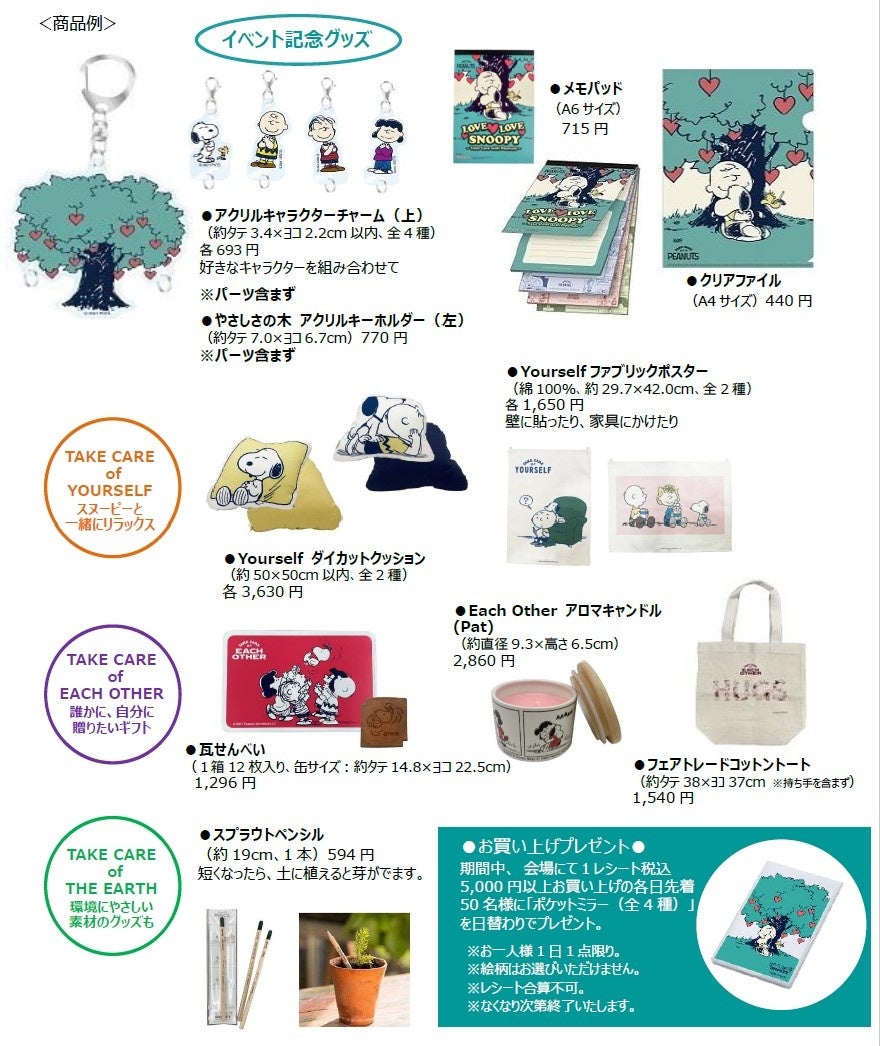 本展では、“Take Care with Peanuts”の「TAKE CARE OF YOURSELF」(自分を愛する)「TAKE CARE OF EACH OTHER」(お互いを思いやる)