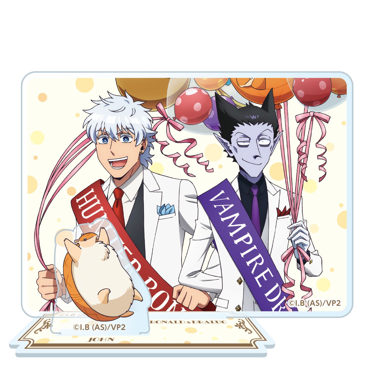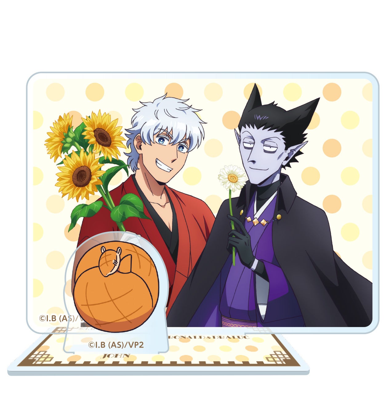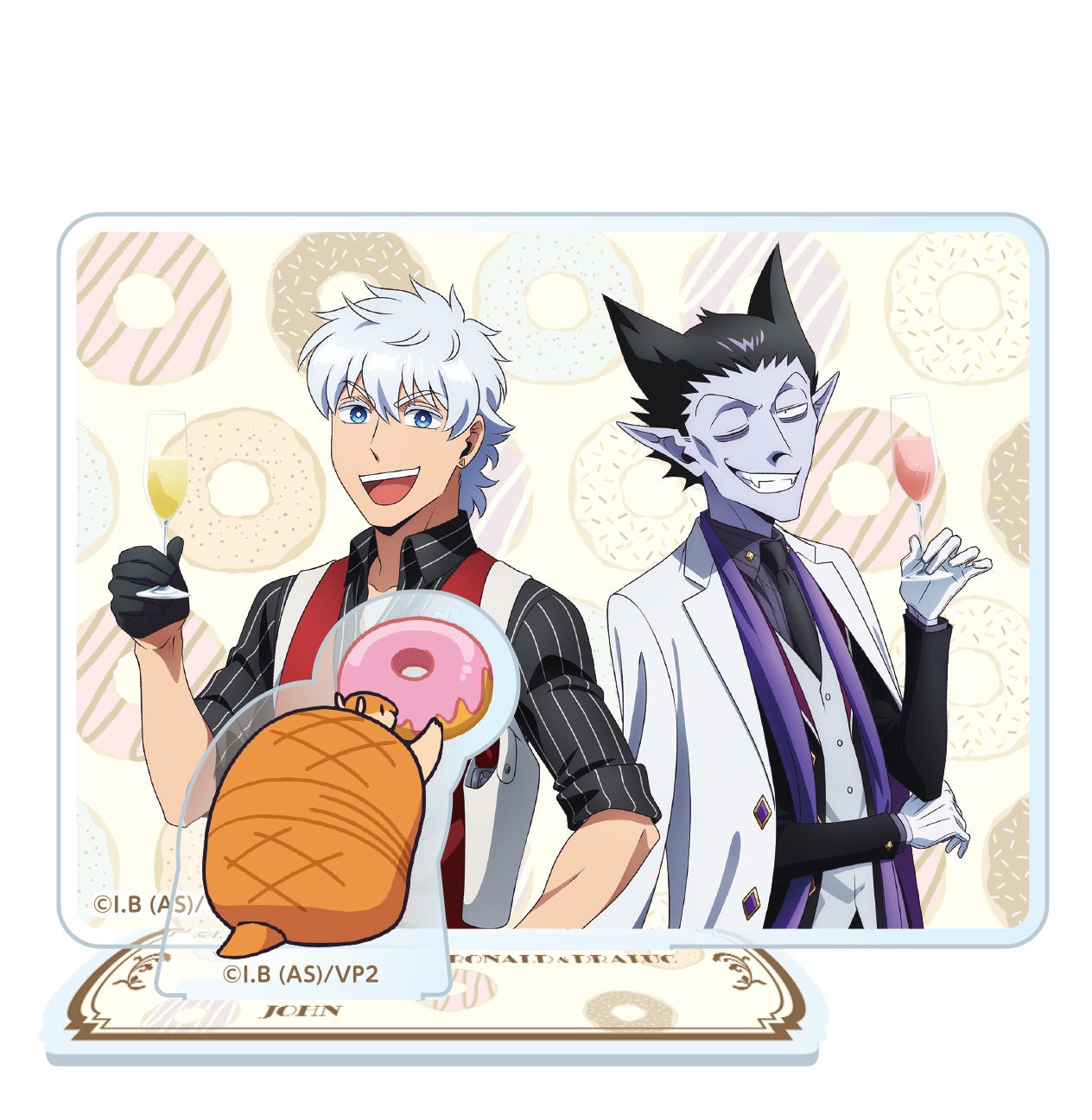グッズステーションで、TVアニメ「吸血鬼すぐ死ぬ2」のロナルドやドラルクの描き下ろしイラストを使用したオリジナル缶バッジを購入頂き、当たり券を引いた方にはアクリルスタンドフィギュアをプレゼント!また、ラスト1個を引いた方にはラストボーナス賞として、アクリルジオラマをプレゼントいたします。