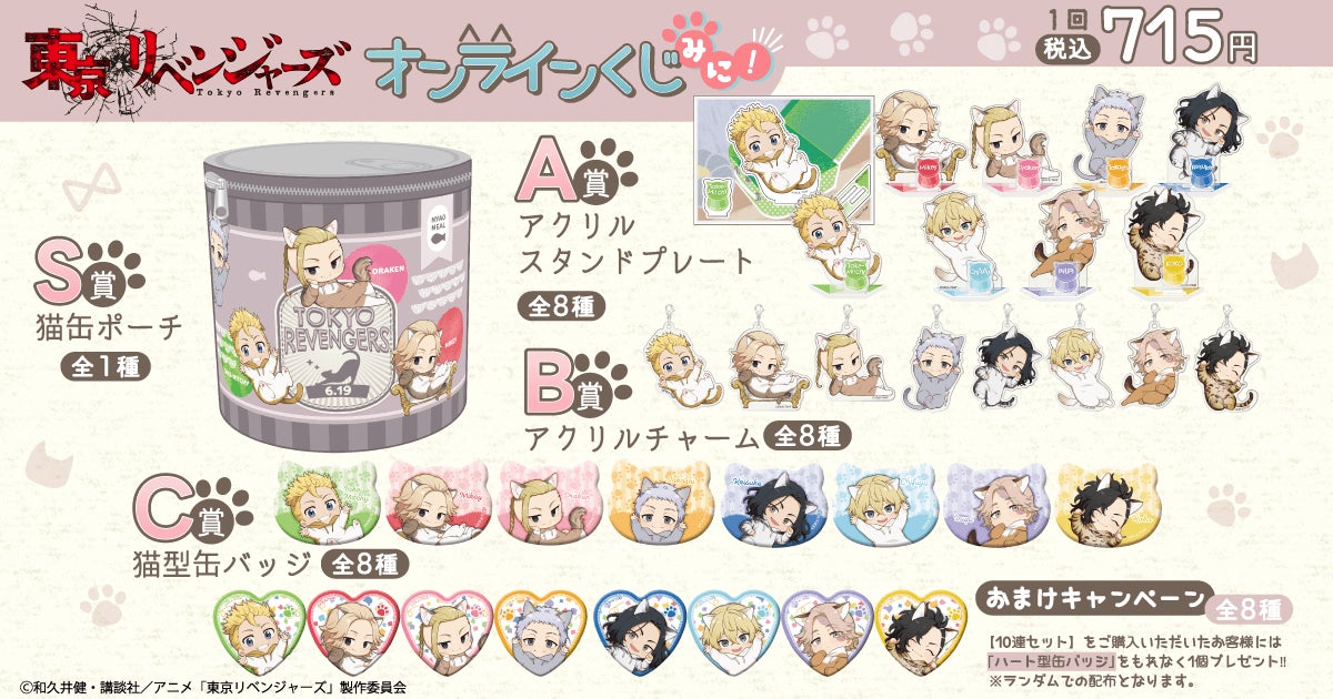 | <『東京リベンジャーズ』オンラインくじ みに! 概要> 販売期間:2023年2月22日(水)17:00~2023年3月14日(火)16:59 販売価格:1回 715円(税込)※別途発送手数料が掛かります。 購入ページ:https://kujibikido.com/lp/revengers/ |
