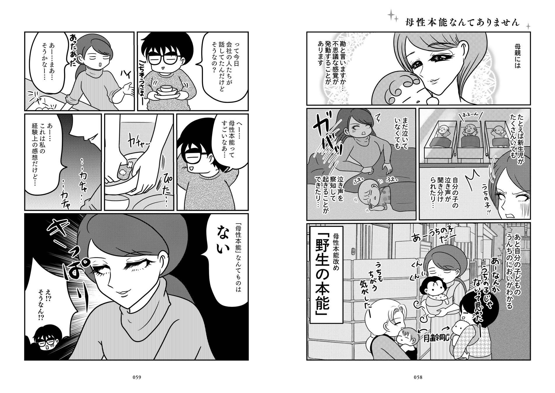 2021年5月からスタートした「ダ・ヴィンチWeb」の連載「子育てしたら白目になりました」で公開した作品に加筆・修正を加え、一冊にまとめました。収録作は、連載で反響の大きかったエピソードを中心に、多くの共感を呼んだものをピックアップ。さらに、単行本でしか読めない嫁姑問題をテーマにした描き下ろしもたっぷりと収録されています。