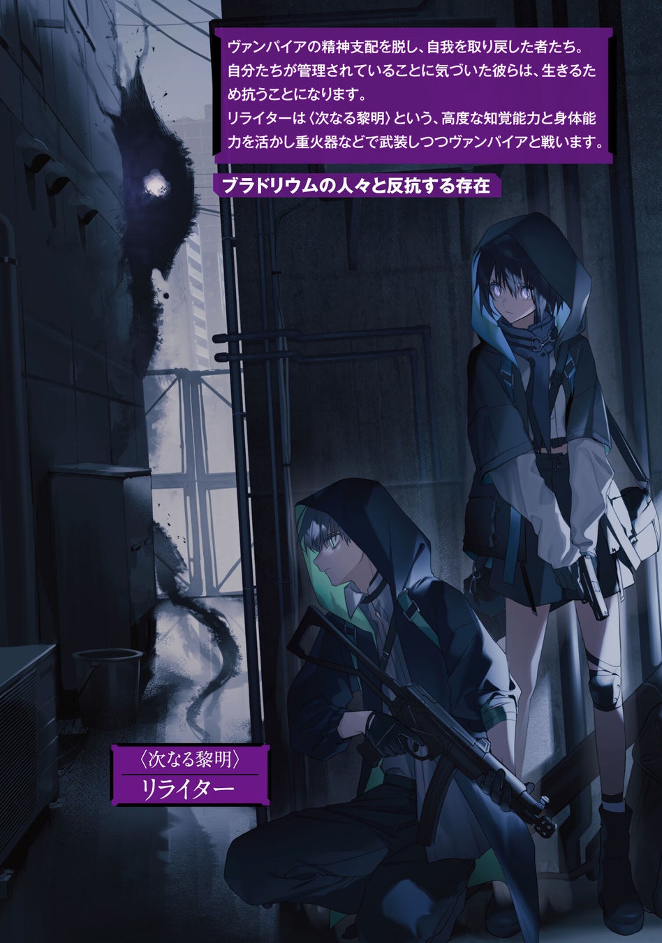 ただ、わずかに支配できない者たちがいる。人間であることを辞め、世界を渡り歩きヴァンパイアを狩り続ける騎士。力に目覚め、ヴァンパイアに命を狙われながらも戦うことを選んだ者たち――リライター。同族でありながらヴァンパイアと敵対する一部のヴァンパイア。