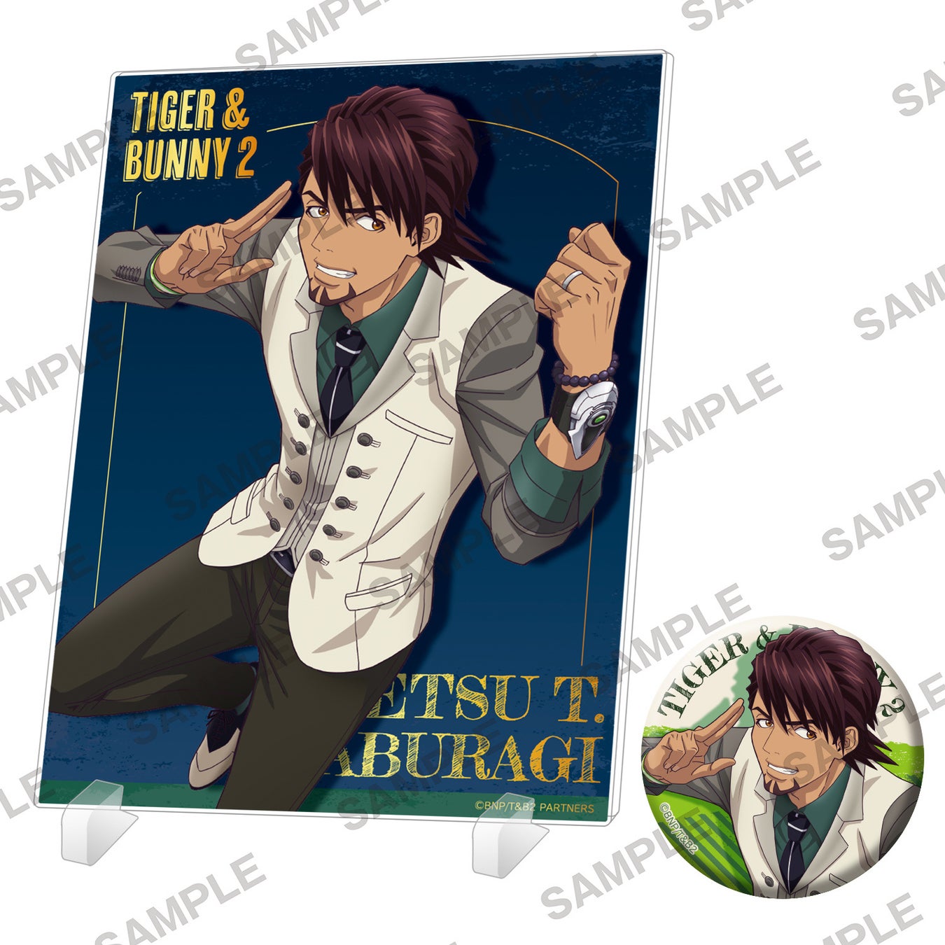 描き下ろしカバーイラストを使用した「バーナビー・ブルックス Jr.」のアクリルパネル(約H17cm×W13cm)とホログラム缶バッジ(直径約5.7cm)がセットに!