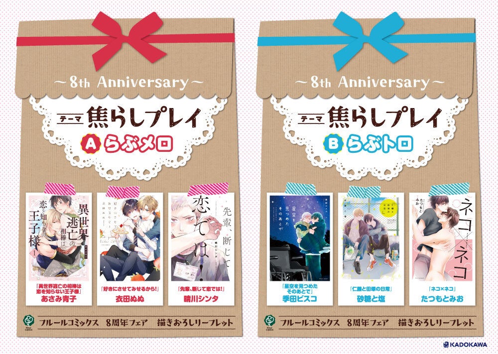 対象書店でのフルールコミックス購入で描きおろしリーフレットや小冊子を配布します! さらに、人気4作品の直筆サイン入りキャンバスアートが「カドカワストア」にてオンライン販売が決定。また続々重版中の人気作『好きにさせてみせるから!』(著:衣田ぬぬ)、実写ドラマ化も大人気『先輩、断じて恋では!』(著:晴川シンタ)の描きおろしイラスト含むグッズのオンラインくじの開催も決定!詳細はイベント特設サイトにてご確認を!