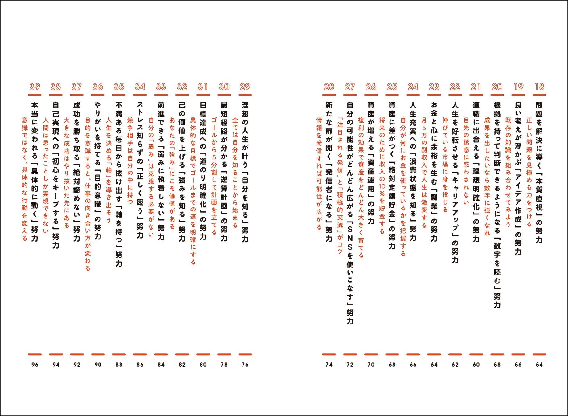 本書では、簡単にすぐ実践可能かつ着実に人生を変えていく「正しい努力」だけを厳選して、紹介しています。