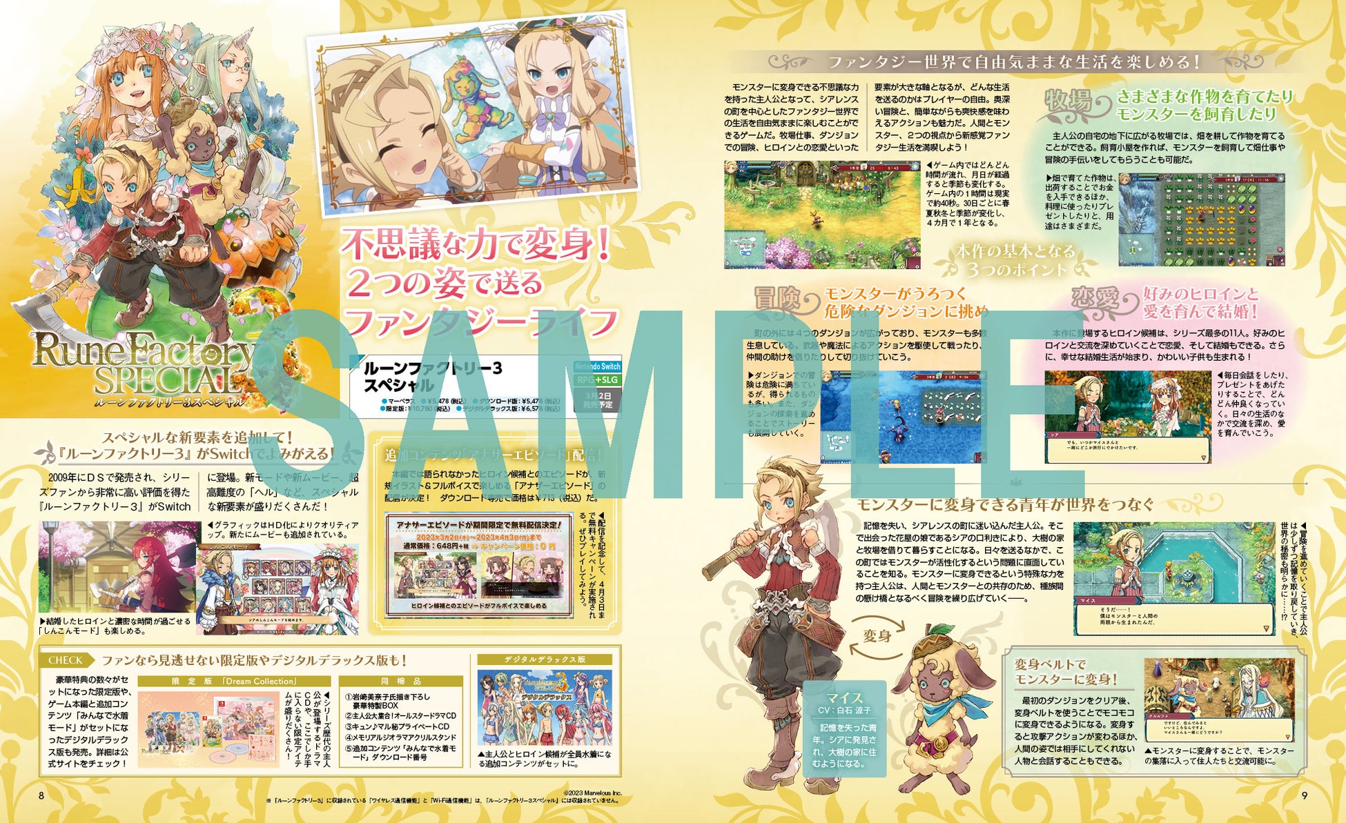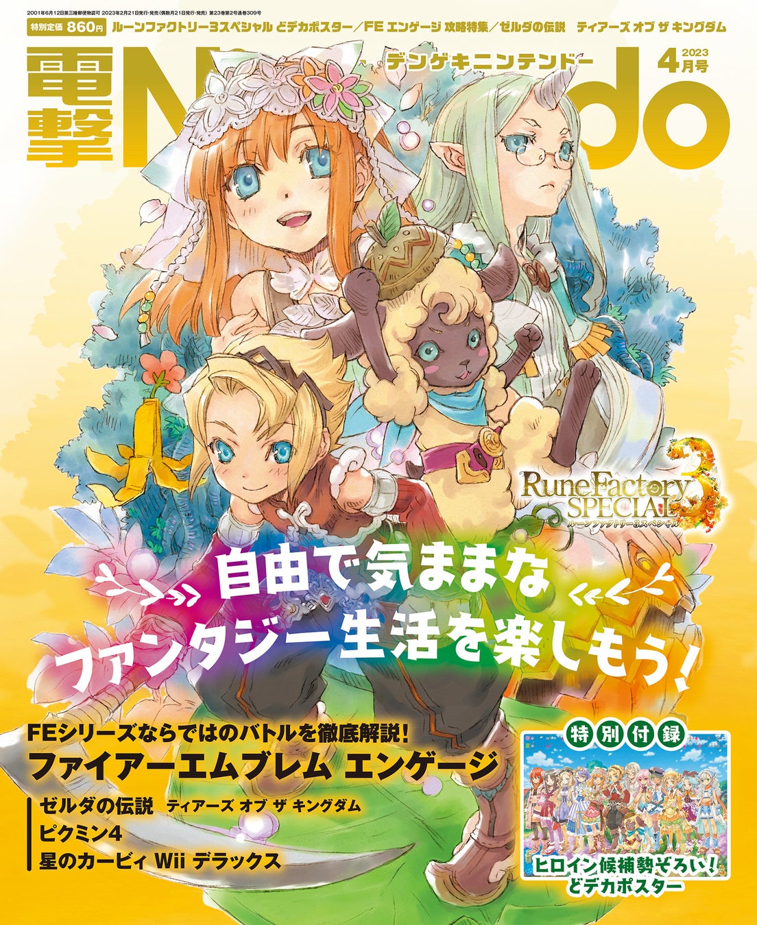 そのほか『ルーンファクトリー3スペシャル』、『星のカービィ Wii デラックス』など発売間近の注目タイトルの特集、さらに「Nintendo Direct 2023.2.9」で発表された『ゼルダの伝説 ティアーズ オブ ザ キングダム』、『ピクミン4』、『ファイアーエムブレム エンゲージ エクスパンション・パス』といった任天堂タイトルの最新情報など、Nintendo Switchユーザーなら、ぜひとも押さえておきたい情報が満載の 『電撃Nintendo 2023年4月号』にぜひご注目ください。