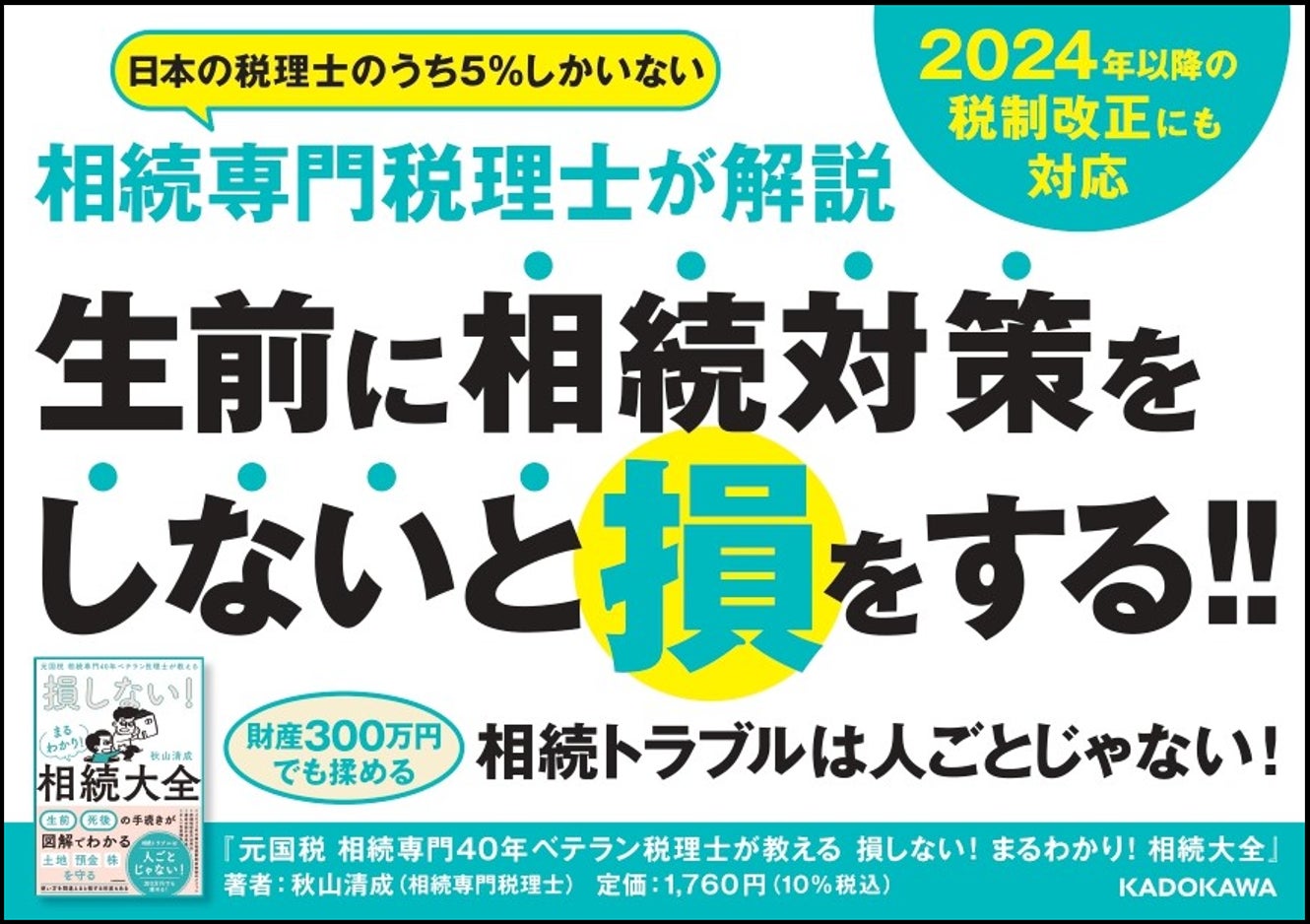 相続専門の税理士は、日本の税理士のうちたった5%しかいませんが、本書は、そんな経歴を持つ”相続専門”税理士の秋山氏が、「損しない相続」や「揉めない相続」等の相続の基本から、勘違いしやすい制度等について、詳しく解説した1冊です。