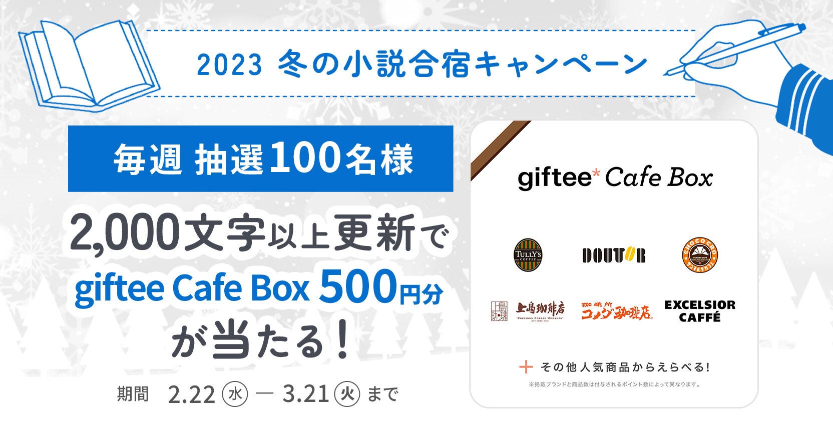 ■「2023冬の小説合宿~2,000文字更新してくれた人へ毎週プレゼントキャンペーン~」特設ページ