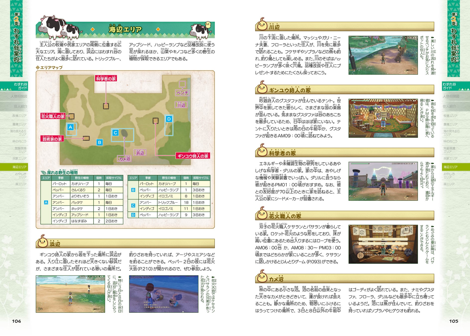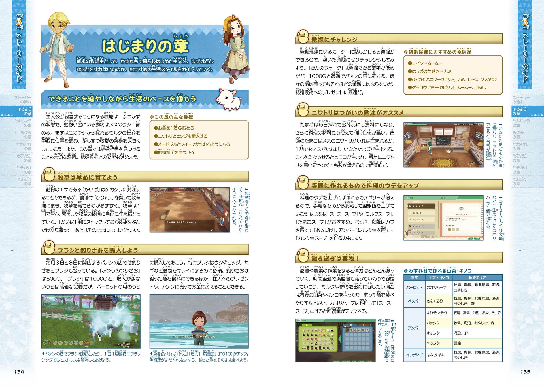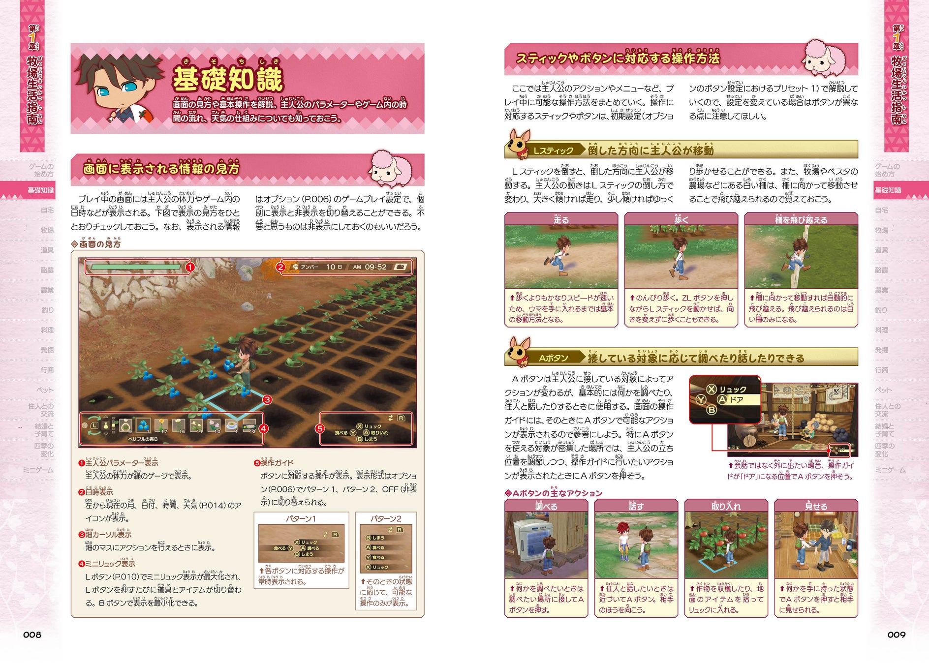 牧場運営には欠かせない農業や酪農のノウハウをはじめ、釣りや料理などの生産活動の進め方を親切丁寧にサポート。さらに、『牧場物語』シリーズではお馴染みの住人たちとの恋愛から結婚、子育てといったイベントを楽しく過ごすための情報もバッチリです。