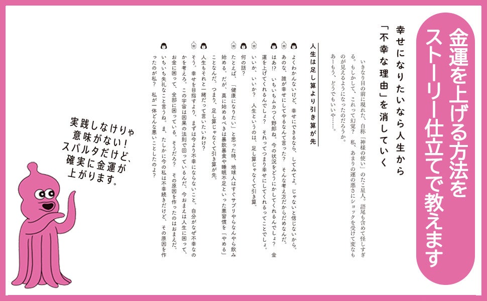 だめだめな貧乏OLの主人公がたこ星人のもとで修業をするうちに金運アップ! ストーリー仕立てだから、すんなり理解できる!