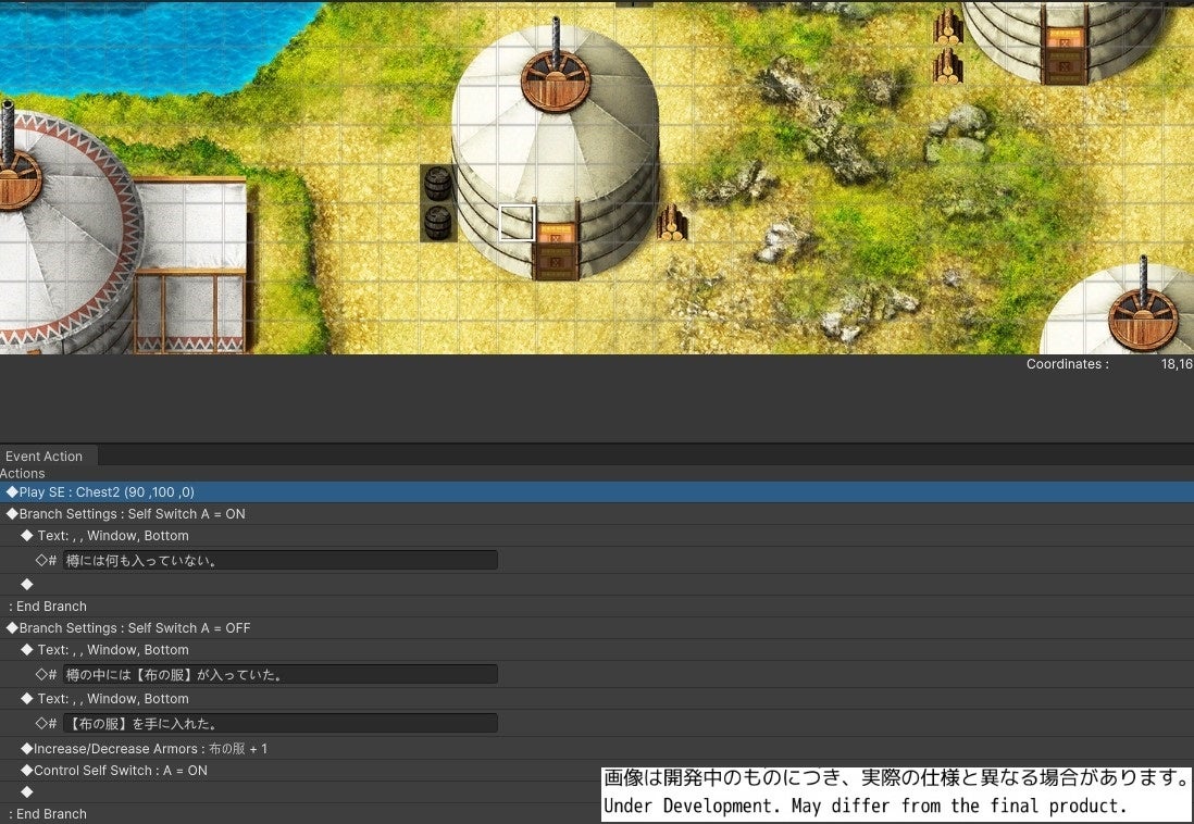 今作ではUnityエディターの機能をベースに、従来のRPG Makerシリーズになかった機能が実装でき、既存の機能もより制作効率が高まるように再設計しております。