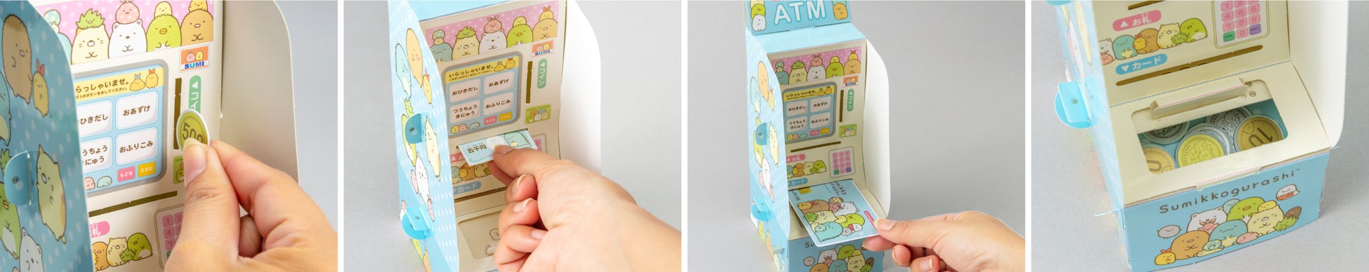 本物のATMそっくりの見た目&機能が満載。すみっコぐらしの特別デザインです。
