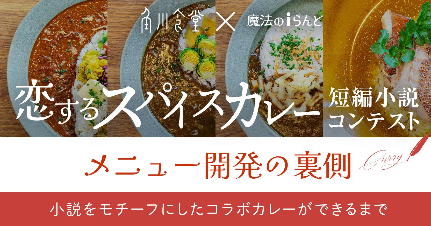 コンテスト開催が実現した経緯や受賞作の感想、メニュー化のポイントなど、どのようにしてコラボカレーが出来上がったかを、魔法のiらんどスタッフが角川食堂スタッフに聞いた『メニュー開発の裏側』も公開中!
